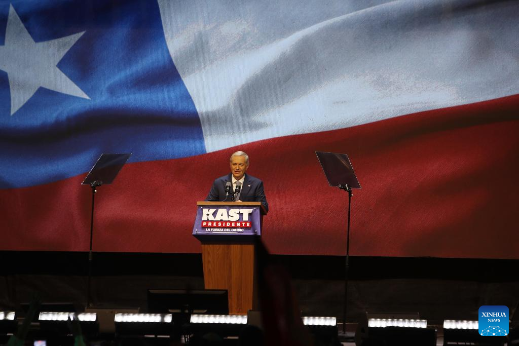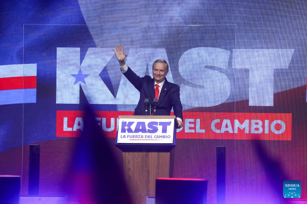 SANTIAGO, Dec. 14 (Xinhua) -- Jose Antonio Kast, presidential candidate of the far-right Republican Party, won the Chilean presidential runoff election, becoming the country's new president, said the electoral authorities on Sunday.