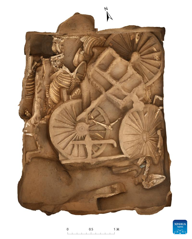 This image shows a pit with remains of chariots and horses at a tomb of the Changchun Ruins in Fuping County, Weinan City of northwest China's Shaanxi Province. A cluster of 31 tombs dating back nearly 3,000 years was discovered in northwest China's Shaanxi Province, providing evidence for the study of political and social development of that period, said archaeologists on Tuesday.(Shaanxi Academy of Archaeology/Handout via Xinhua)