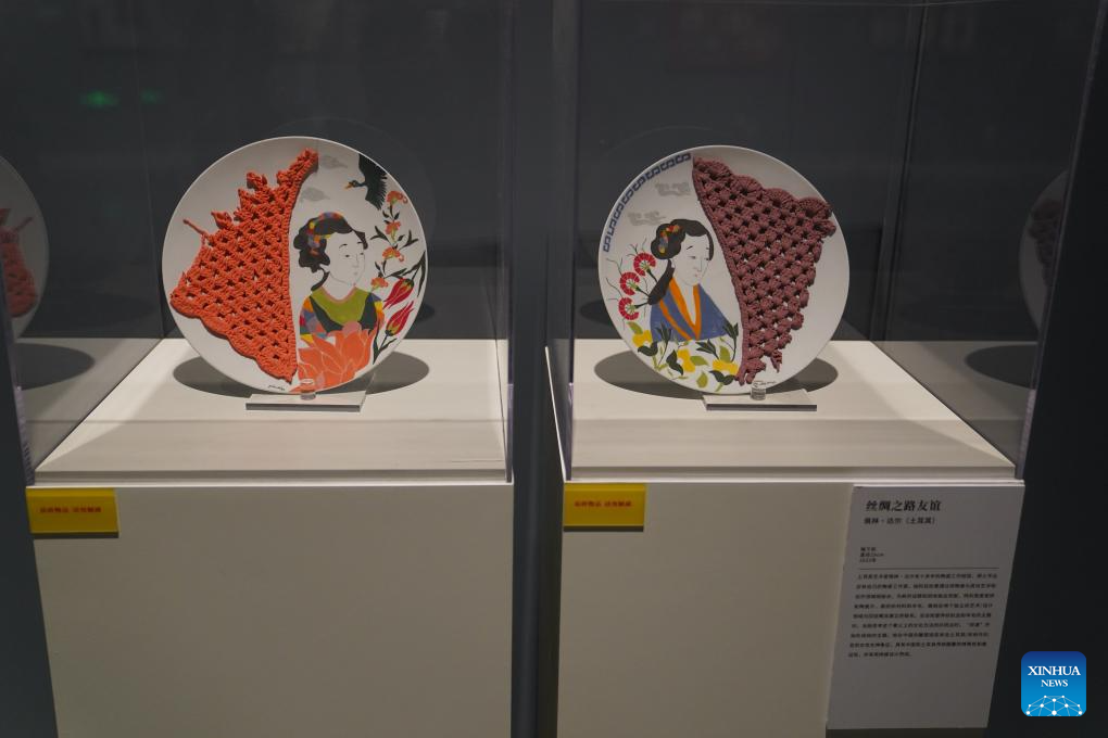 This photo taken on Dec. 19, 2025 shows a ceramic artwork by a Turkish artist during the "Dunhuang in Glazes" exhibition at the Jiangxi provincial art museum, in Nanchang, east China's Jiangxi Province. (Xinhua/Zhou Mi)