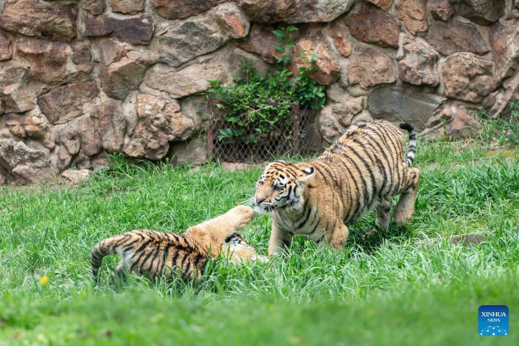 Eleven-month-old Bengal tiger cubs are seen at the Johannesburg Zoo in Johannesburg, South Africa, on Jan. 9, 2026. Two Bengal tiger cubs were rescued from illegal trade. They made their public debut on Jan. 8. (Photo by Shiraaz Mohamed/Xinhua)
