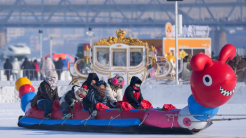 Frozen Songhua River in Harbin draws crowds for ice-and-snow-themed amusements
