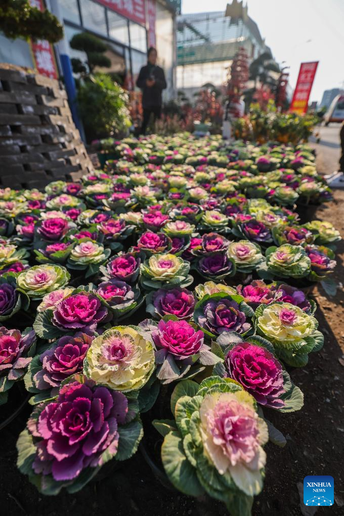 People buy new year flowers at a flower and seedling market in Jindong District of Jinhua City, east China's Zhejiang Province, Jan. 8, 2026. Since the beginning of the new year, over 600 flower and seedling merchants at a flower and seedling market in Jindong District have been busy with the peak sales season for new year flowers.