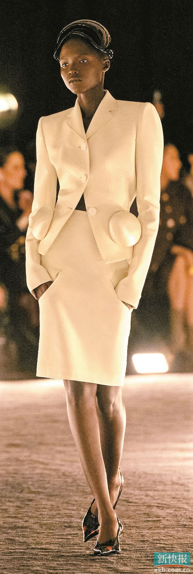 “云上舞白”真的太好搭,这种带暖色调的象牙色泽笼罩着一层复古的优雅滤镜以及漫不经心的松弛,可将一切繁复元素融为一体,更能柔化硬朗线条。如硬朗的西装外套或几何剪裁的连衣裙,“云上舞白”的运用都可中和冷硬感,赋予整体造型温柔与包容。