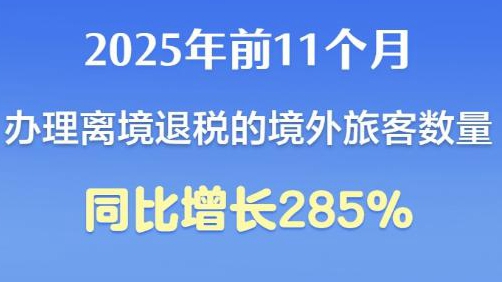 前11個月辦理離境退稅的境外旅客數(shù)量同比增長285%