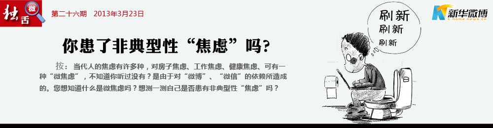 親,你出現“微焦慮”癥狀了嗎? 不“織圍脖”、不接發微信就寢食難安,出現焦慮、依賴、強迫等心理問題。這就是患上了微博焦慮癥,簡稱為“微焦慮”。