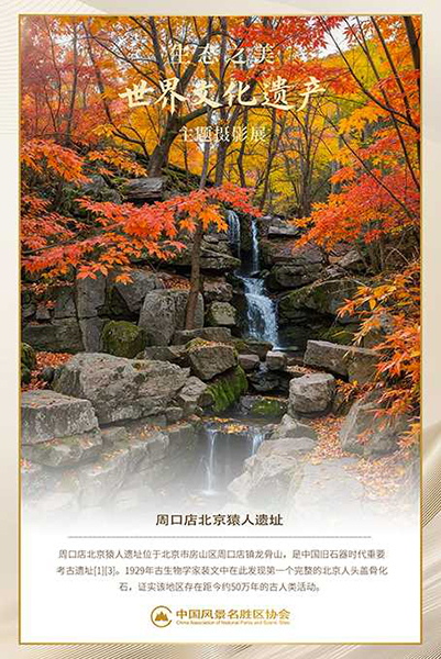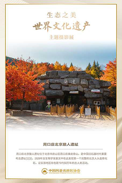 作者持续聚焦世界遗产题材逾三十载,始终秉持“以影像传递生态理念”的创作宗旨。本次展出作品融合商业摄影的精致语言与公益传播的社会使命,构建出兼具视觉张力与思想深度的影像叙事。其中,国家级风景名胜区《北京周口店猿人遗址》系列尤为突出,镜头巧妙捕捉岩层肌理、考古现场与自然生境之间的对话,不仅再现了“人类远古家园”的地质奇观与文明印记,更以影像修辞深化“古今共生”的遗产保护哲学,引导观众凝视时间纵深中自然与人文的绵延共振。