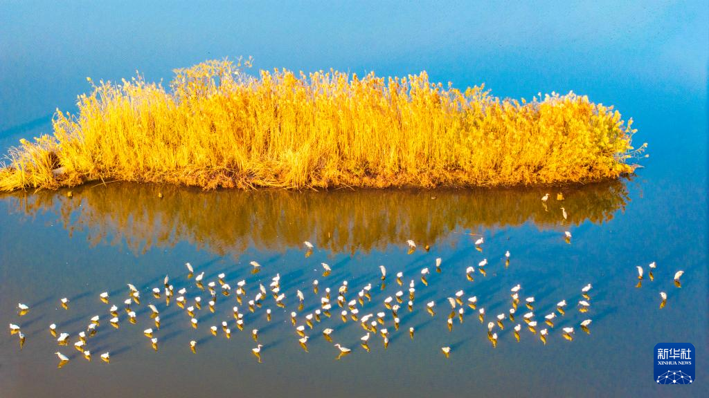 12月6日,群鸟在江苏兴化里下河国家湿地公园内栖息、觅食(无人机照片)。