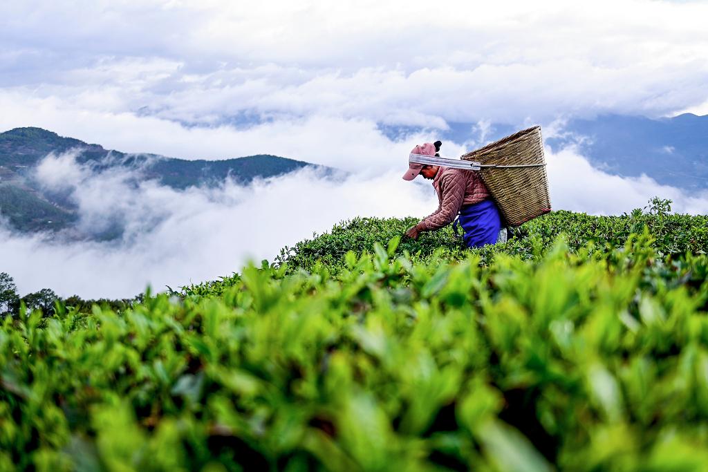 南涧是云南主要茶产区,尤以白茶闻名。雨后初霁,走进南涧藏茶谷,层叠茶垄如绿浪翻涌,野花星点其间。茶树郁郁葱葱,新芽俏立,茶农穿梭忙碌,收获春天的馈赠。