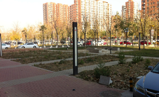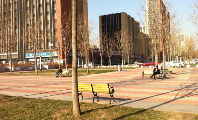 也許是波普公社剛建成的原因,小區的綠化還未成形,從目前的狀況來看,樹木和綠地都剛剛植入,應該要經過一段時間的培育之后,才能達到綠化的效果。
