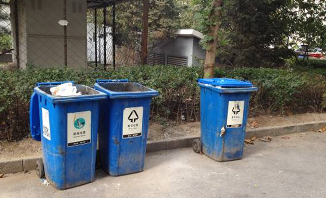 小區環境衛生方面也不容樂觀,短短百余米的距離內記者發現了多處寵物糞便。在垃圾回收的地方,盡管有垃圾分類的標志,但是落實情況堪憂:各種垃圾被混作一團,硬化路面都被污染了顏色并不時散發出股股異味。