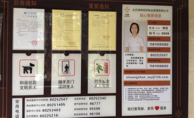 記者觀察到,小區(qū)各單元門內(nèi)均設有公示欄,小區(qū)物業(yè)24小時服務熱線等基本信息公示明確,每單元配有“貼心管家”,聯(lián)系方式等信息發(fā)布十分清晰。時值供暖試水前后,小區(qū)內(nèi)還貼有相關(guān)的溫馨提示。