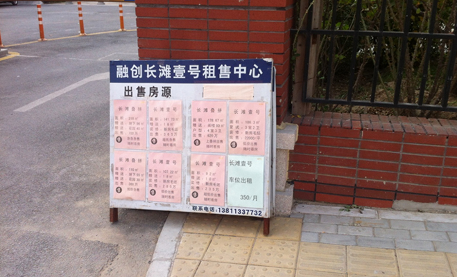 小區的外圍墻比西山壹號院要低一些,但也在墻上設置了24小時監控儀,小區內部有保安巡邏。小區內部物業人員統一著裝并帶有白手套。雖然網站上長灘壹號院價位在780萬/套,但在實地調查中,根據面積的不同,價位在235萬—620萬之間不等。
