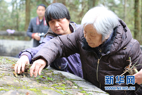 在江西蓮花縣玉壺山,龔全珍攜子女為甘祖昌將軍掃墓(4月1日攝)。新華社發(fā)