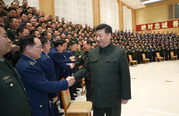??? 2月12日,中共中央總書記、國家主席、中央軍委主席習近平在成都親切接見駐蓉部隊師以上領導干部和建制團單位主官。新華社記者李剛攝