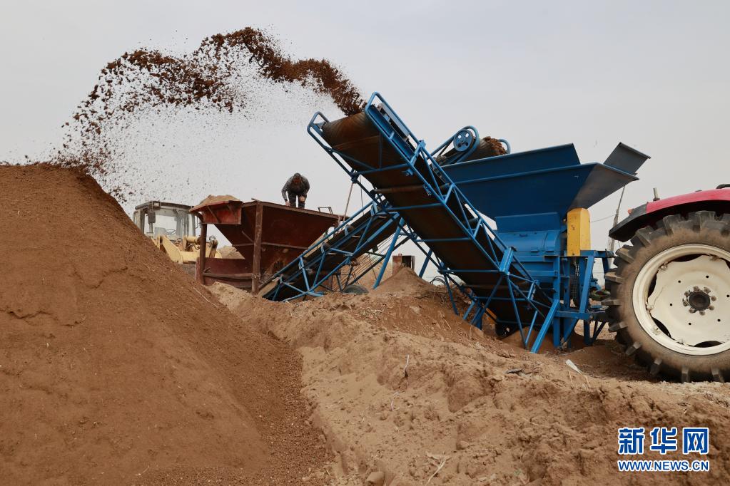 4月3日,唐山市豐南區一水稻育秧合作社的工人在篩選育苗用土。