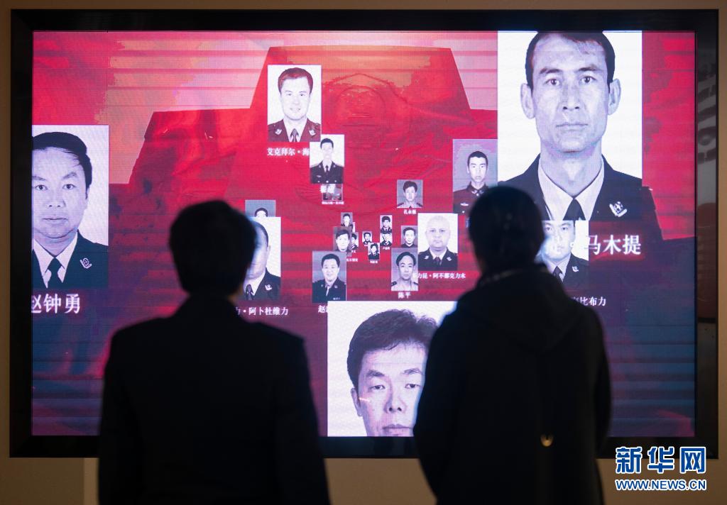4月3日,瑪依努爾(右)在新疆警史館參觀,祭奠英烈。