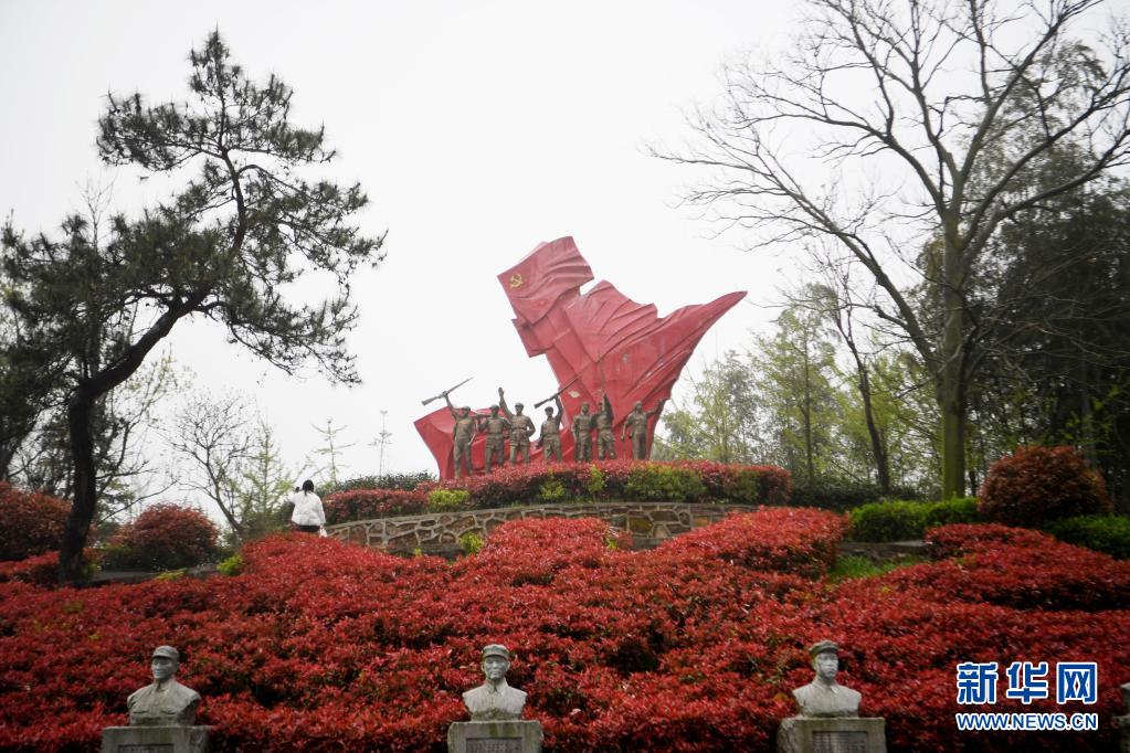 4月2日,游客在大別山商城革命歷史紀念館外參觀。