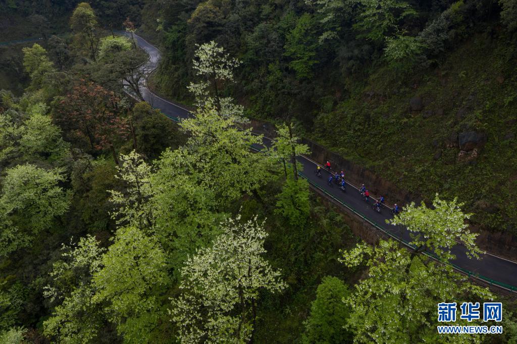 4月18日,騎行愛(ài)好者在龍蒼溝國(guó)家森林公園里騎行。新華社記者 江宏景 攝