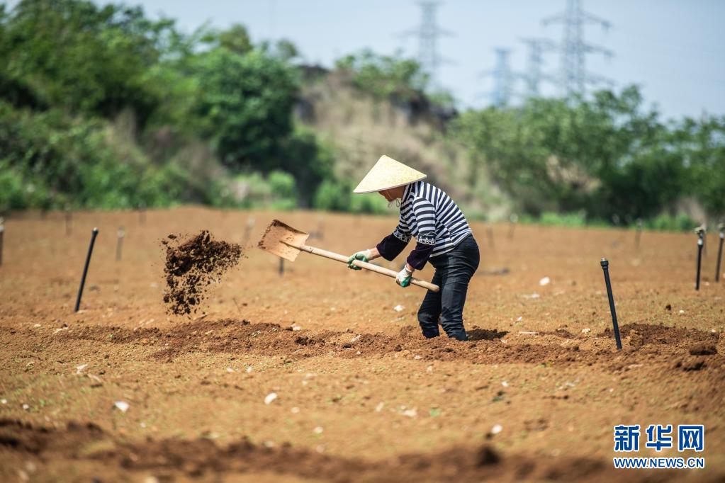 4月20日,貴州省六盤水市六枝特區木崗鎮農民在田地里勞作。