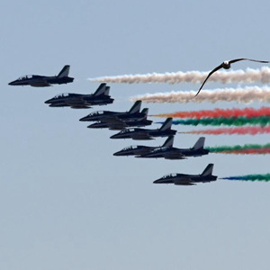 4月25日,意大利“三色箭”飛行表演隊(duì)在羅馬舉行的紀(jì)念儀式上噴出代表意大利國旗顏色的紅白綠三色煙霧。