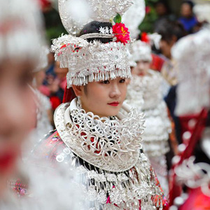今年姊妹節(jié)前夕,母親張?jiān)雅畠菏⒀b的銀飾拿到銀飾店里進(jìn)行清洗,希望女兒能在盛裝巡演上展示最美的一面。4月25日姊妹節(jié)當(dāng)天,張佳麗早早起床,在母親和同學(xué)的幫助下,開始化妝、穿衣、佩戴銀飾,一直忙到9點(diǎn)才準(zhǔn)備完畢。身著盛裝站在巡演隊(duì)伍中,張佳麗說:“這是我們苗族同胞最大的節(jié)日,無論身處何地,我都會如約回家參加活動!”