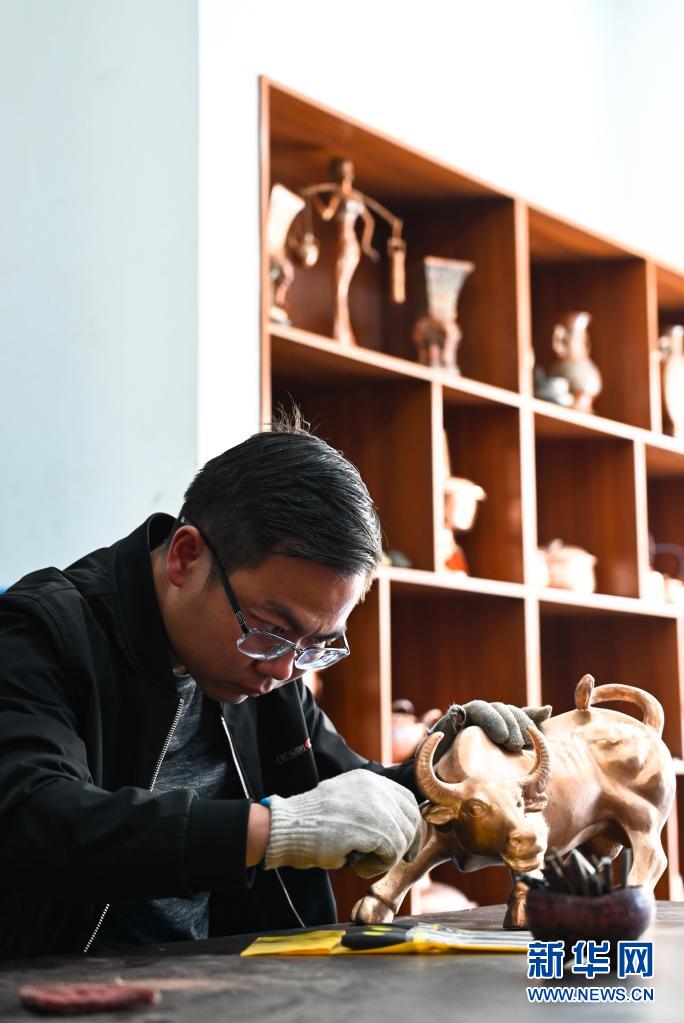 地處滇東北、烏蒙山腹地的云南會澤縣流傳著具有300多年歷史的斑銅制作工藝。斑銅工藝復(fù)雜,要采用高品位的銅為原料,經(jīng)過20余道工序制作而成。產(chǎn)品“妙在有斑,貴在渾厚”,風(fēng)格獨(dú)樹一幟。33歲的張偉是會澤“張氏斑銅”的第十三代傳人。自幼深受地域文化和家庭熏陶的他,大學(xué)畢業(yè)后,返鄉(xiāng)從事斑銅制作工作。在會澤古城的“銅匠街”,張偉創(chuàng)辦了斑銅傳習(xí)館,不斷研發(fā)斑銅新產(chǎn)品、傳承著這項(xiàng)非遺技藝。“斑銅是一種情感、一種文化,希望在我們這代人的努力下能夠更好地將它傳承下去,讓更多人了解斑銅的獨(dú)特魅力。”張偉說。