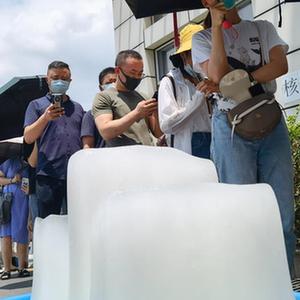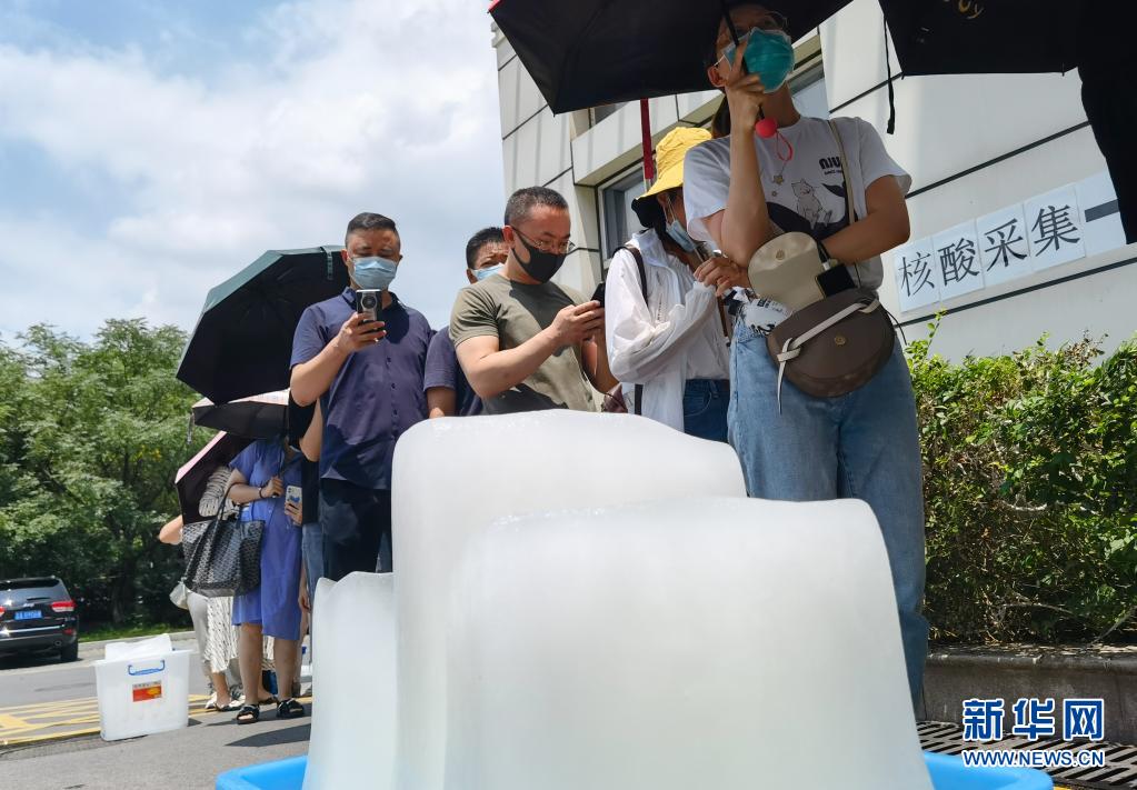 江蘇省南京市于7月21日開始對全市常住人口、外來人員開展全員核酸檢測。目前正值盛夏,氣溫較高,在南京市第一醫院河西院區核酸檢測點,工作人員專門為排隊等候的市民準備了冰塊降溫。