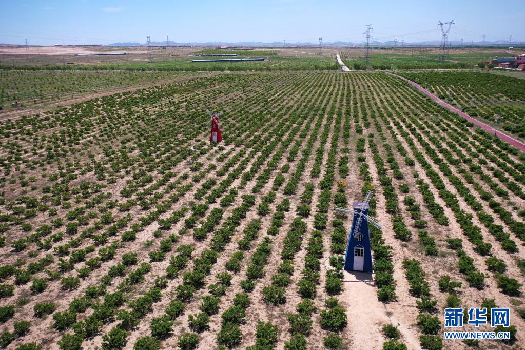 這是寧夏同心縣圣峰休閑生態(tài)觀光園內的玫瑰觀光區(qū)(6月22日攝,無人機照片)。新華社記者 楊植森 攝