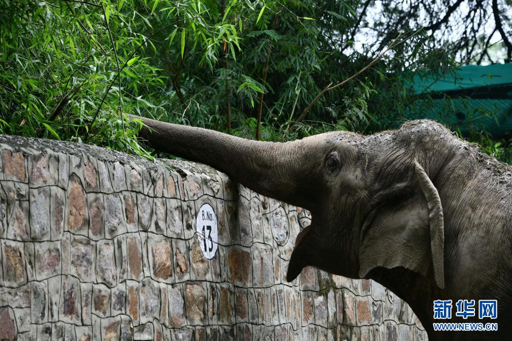 這是8月1日在印度新德里動物園拍攝的大象。