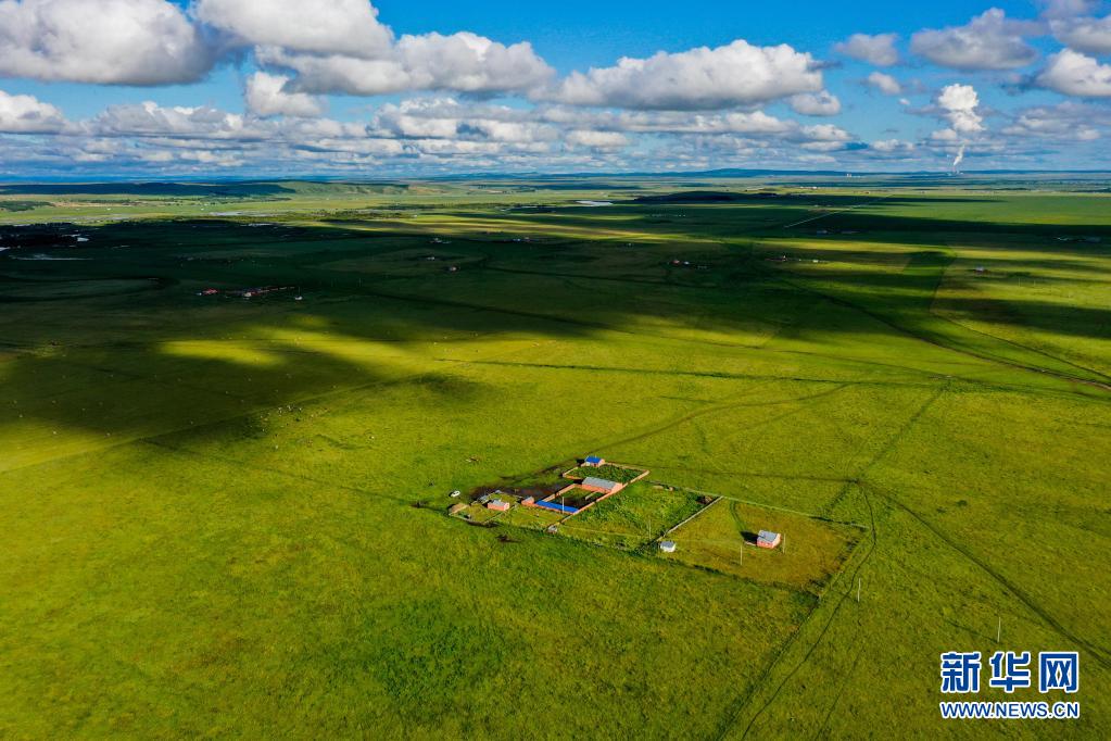 這是吉布斯樂瑪家的房屋和草場(7月27日攝,無人機照片)。