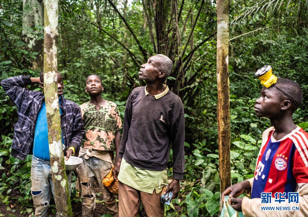 7月17日,中非共和國洛巴耶省當地人在森林里找蟲子。