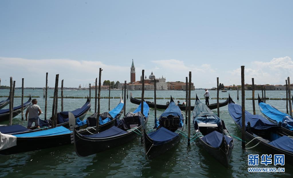 8月3日,在意大利威尼斯,“貢多拉”船停靠在岸邊。