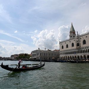 8月3日,游客乘坐“貢多拉”船游覽意大利威尼斯。
