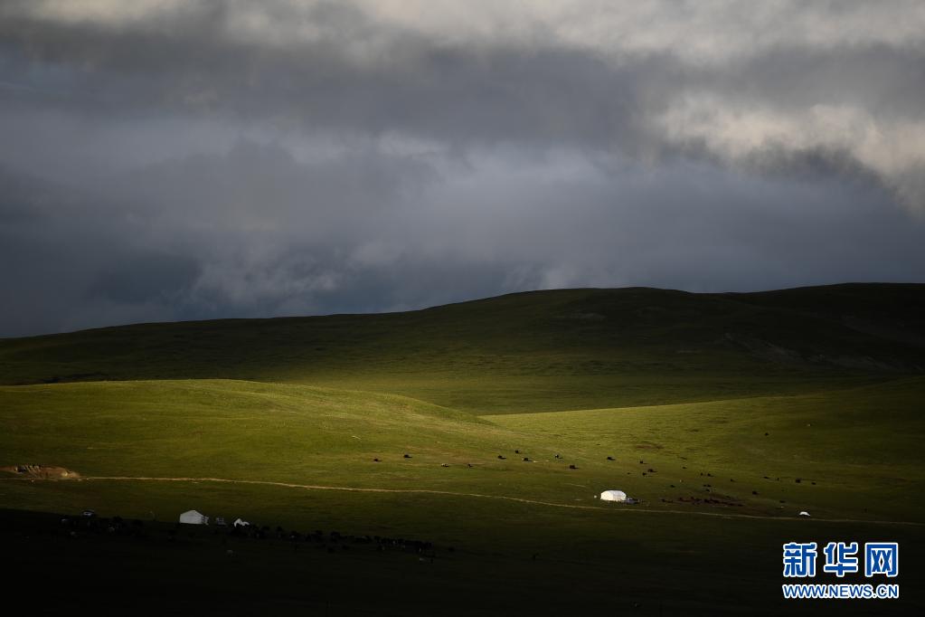 夏日時節,位于青海省果洛藏族自治州瑪沁縣當洛鄉的草原生機勃勃,牛羊、帳篷點綴其間,牧歌回蕩在高原牧場。