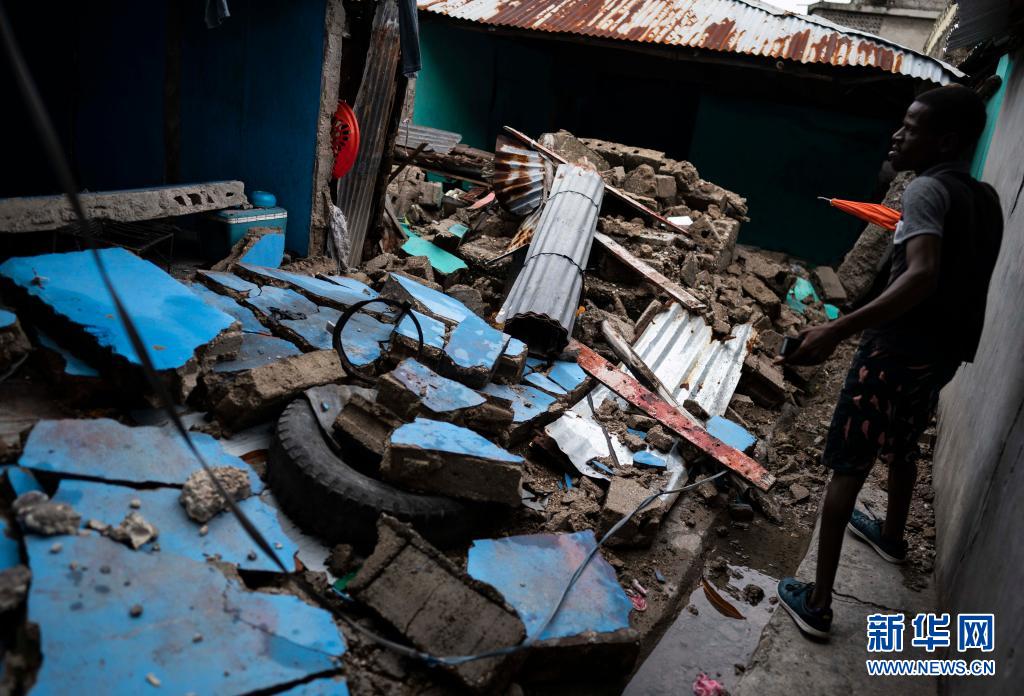 8月17日,一名男子在海地萊凱查看一處房屋廢墟。