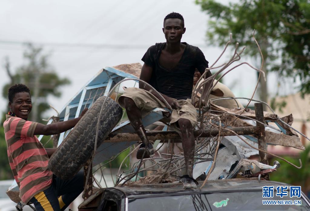 8月17日,兩名男子在海地萊凱搭乘汽車運送物品。