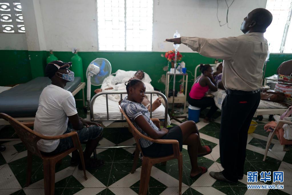 這是8月18日在海地震中附近的萊凱一家醫院拍攝的接受治療的民眾。