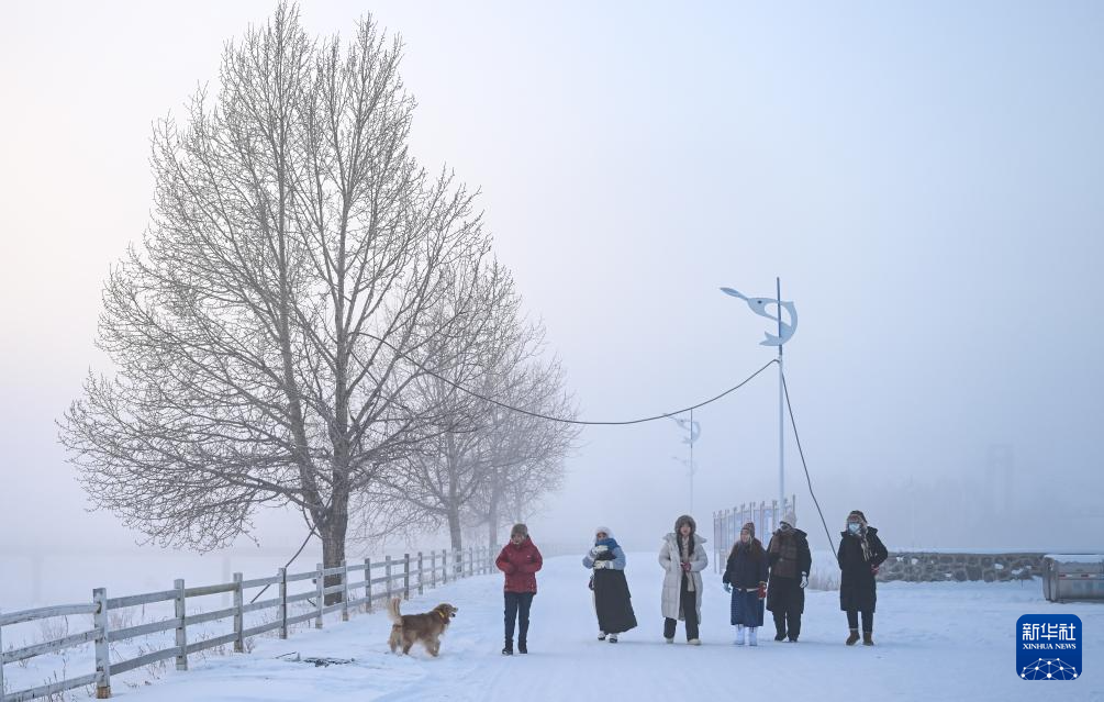 12月26日,游客在内蒙古呼伦贝尔市根河市游玩。