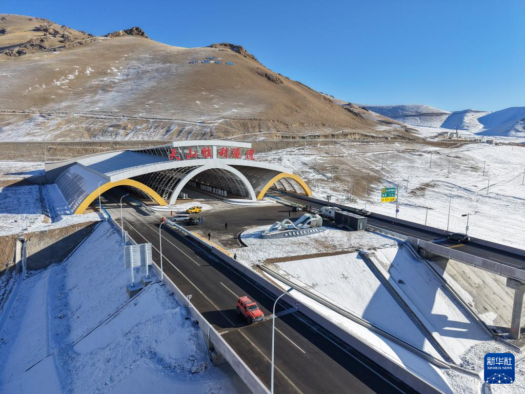 12月26日拍摄的新疆乌尉高速公路天山胜利隧道口(无人机照片)。