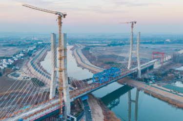 1月8日晚,新建上海至南京至合肥高速铁路(以下简称沪宁合高铁)控制性工程——南京特大桥跨滁河斜拉桥顺利合龙,标志着该斜拉桥正式转入桥面系施工阶段。