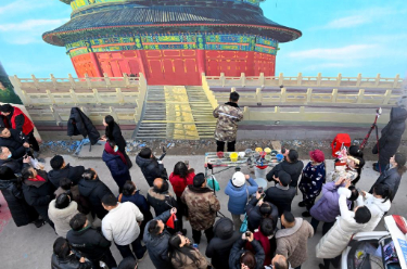 近日,河南商丘睢阳区吴营村“火了”,青年画家吴承言耗时5天创作的18米长、8米高“天安门”墙绘,吸引数万人前来观光,小村庄变成热闹的大集市。