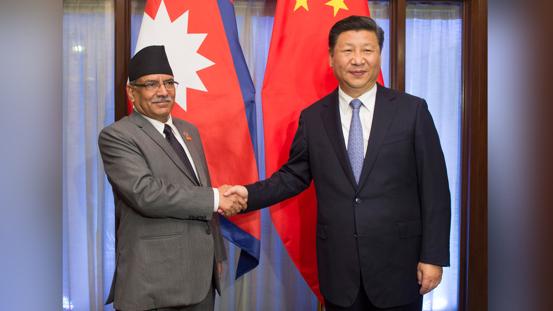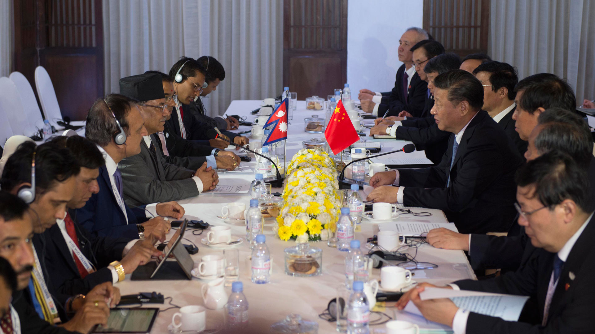 10月15日,國(guó)家主席習(xí)近平在印度果阿會(huì)見(jiàn)尼泊爾總理普拉昌達(dá)。新華社記者 謝環(huán)馳 攝