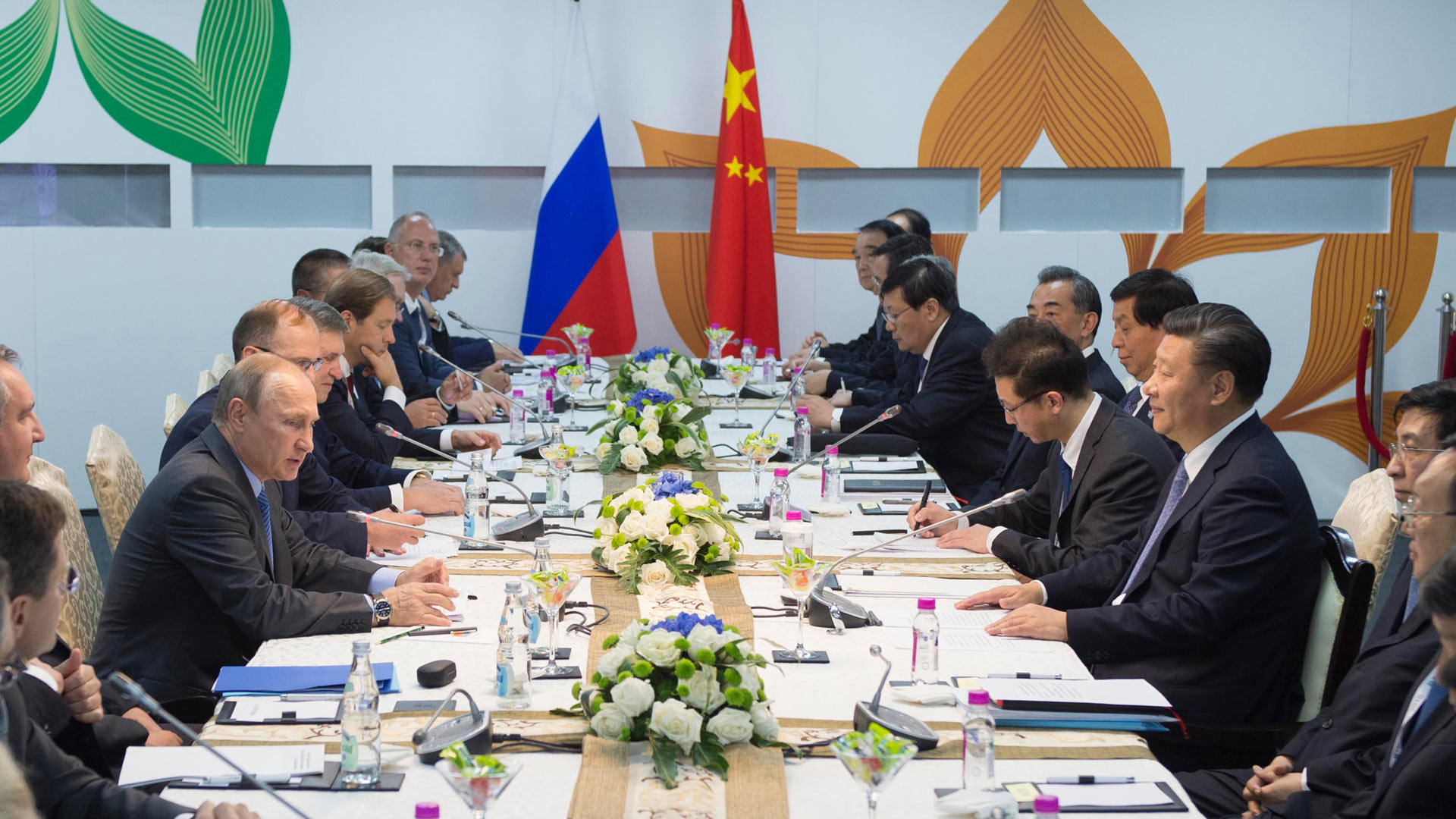 10月15日,國(guó)家主席習(xí)近平在印度果阿會(huì)見(jiàn)俄羅斯總統(tǒng)普京。新華社記者 謝環(huán)馳 攝