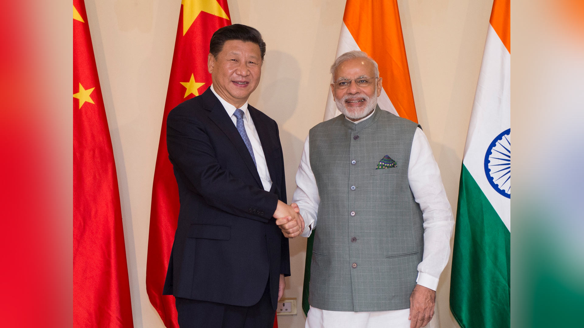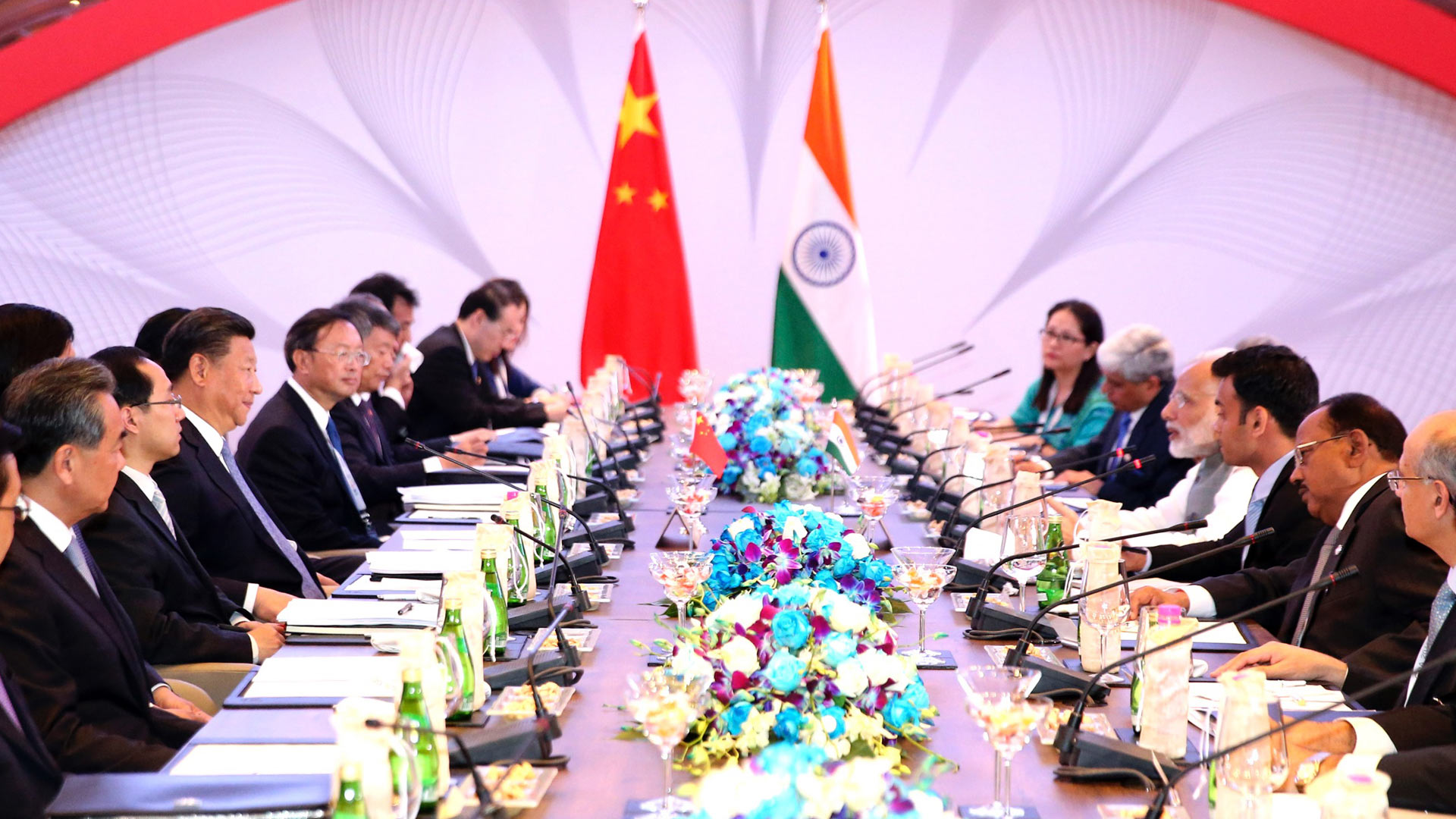 10月15日,國(guó)家主席習(xí)近平在印度果阿會(huì)見(jiàn)印度總理莫迪。新華社記者 丁林 攝