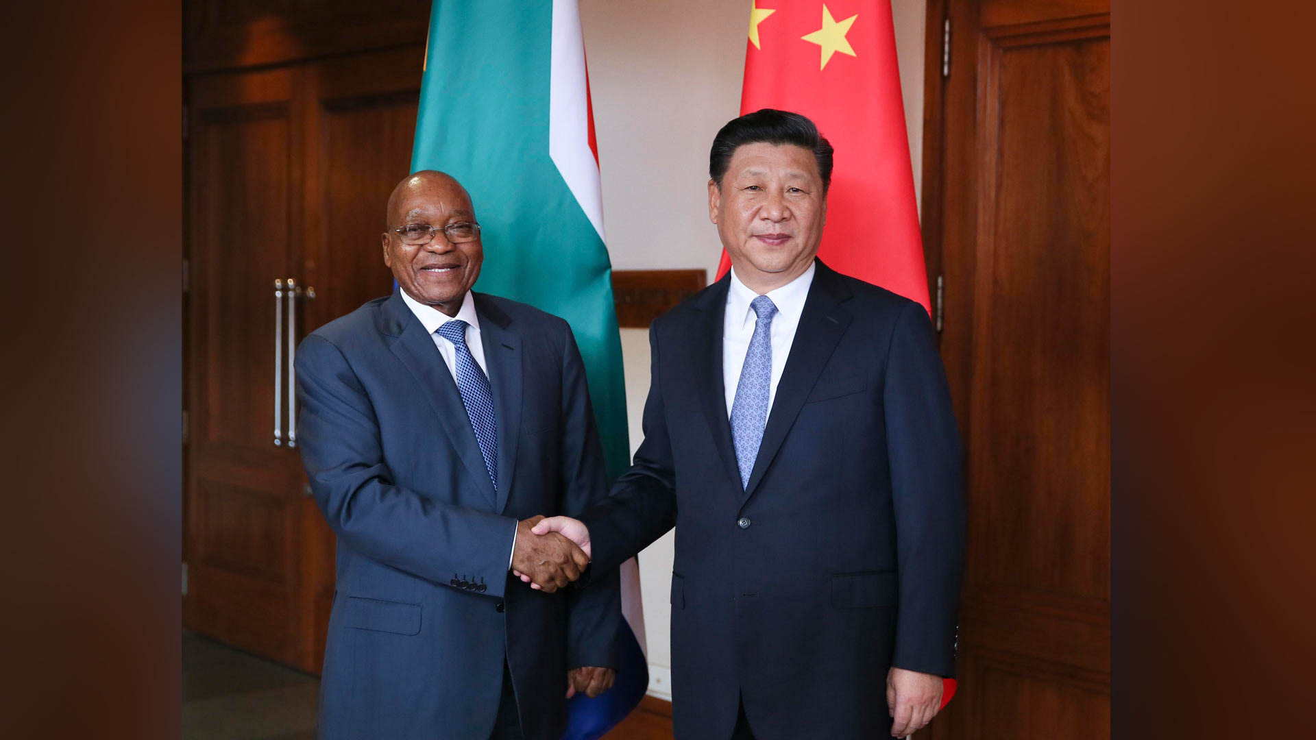 10月15日,國(guó)家主席習(xí)近平在印度果阿會(huì)見(jiàn)南非總統(tǒng)祖馬。新華社記者 蘭紅光 攝