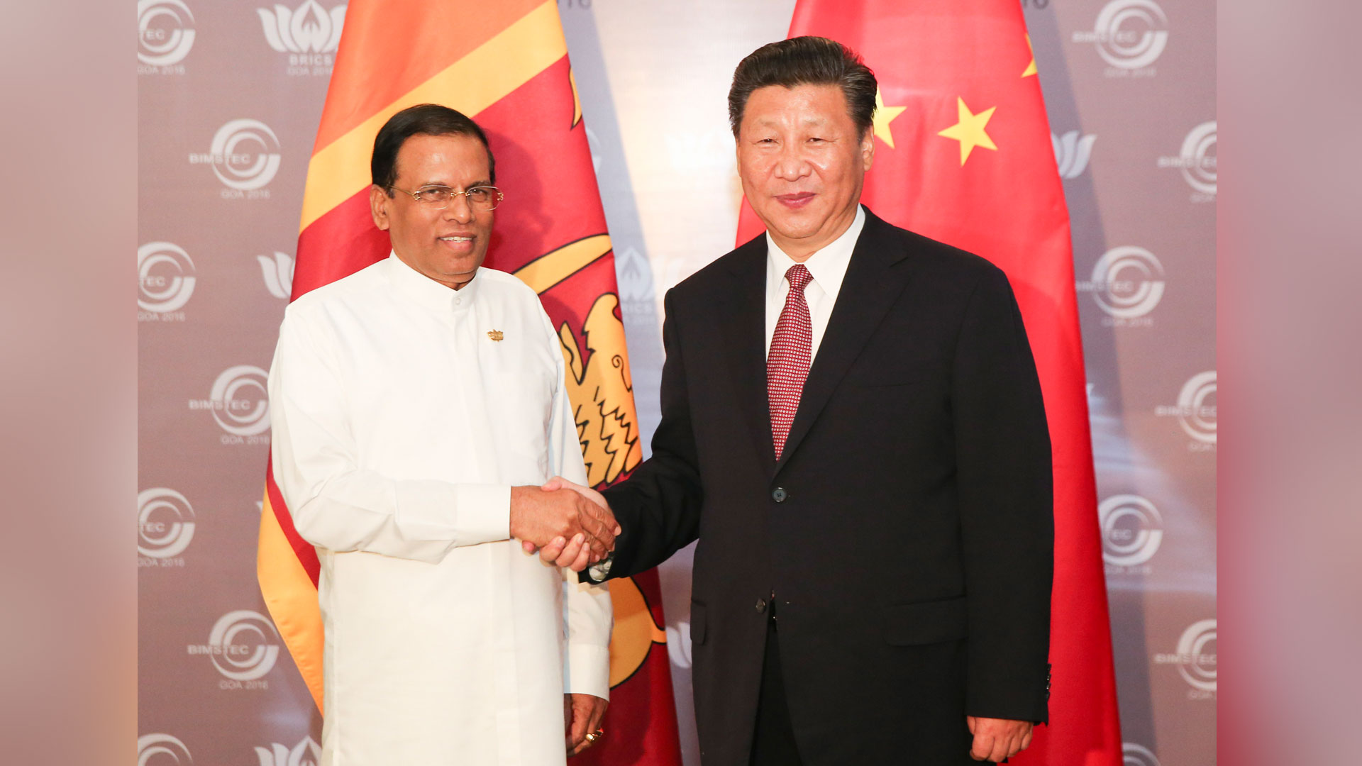 10月16日,國(guó)家主席習(xí)近平在印度果阿會(huì)見(jiàn)斯里蘭卡總統(tǒng)西里塞納。 新華社記者 丁林 攝