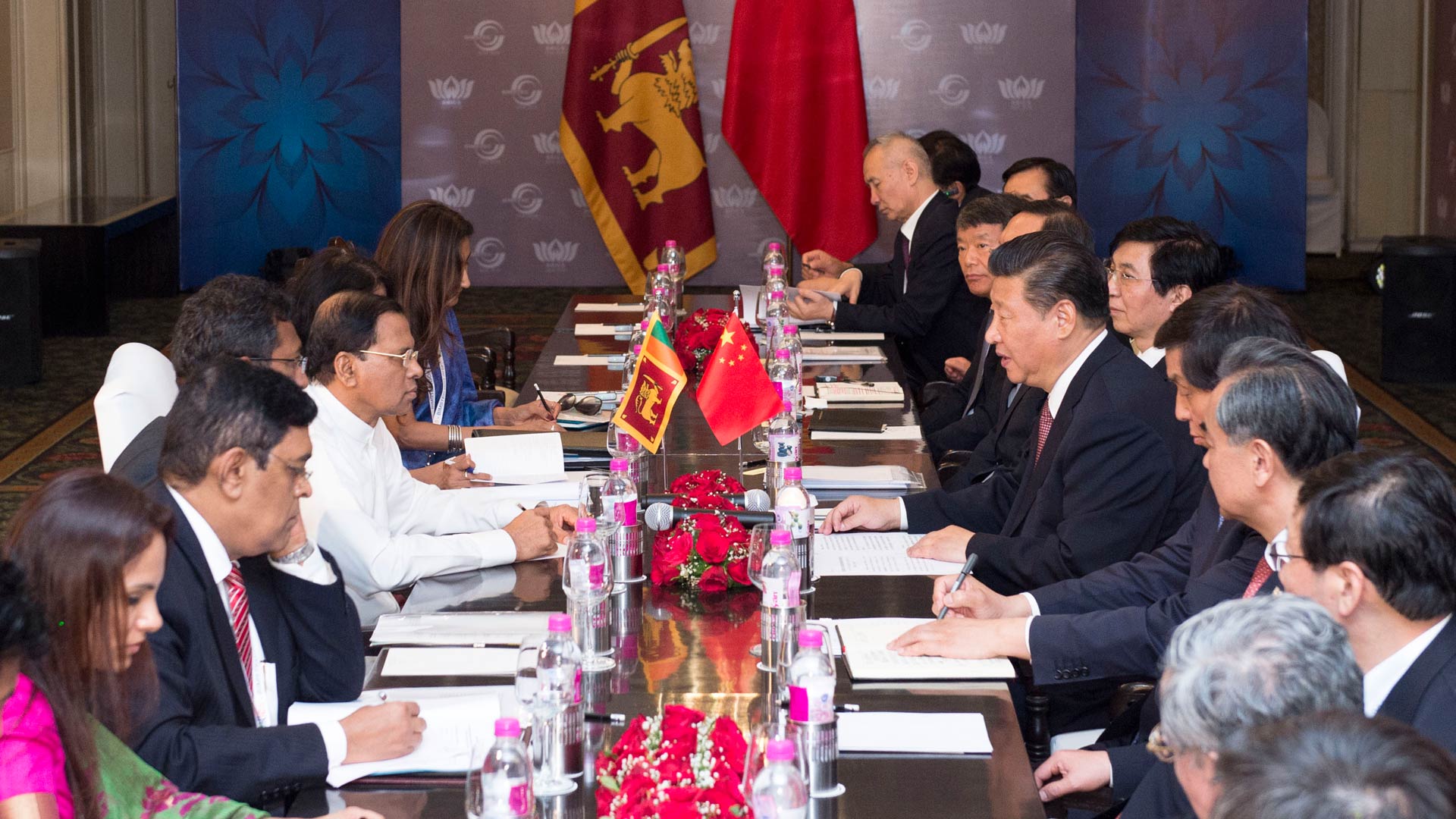 10月16日,國(guó)家主席習(xí)近平在印度果阿會(huì)見(jiàn)斯里蘭卡總統(tǒng)西里塞納。 新華社記者 王曄 攝