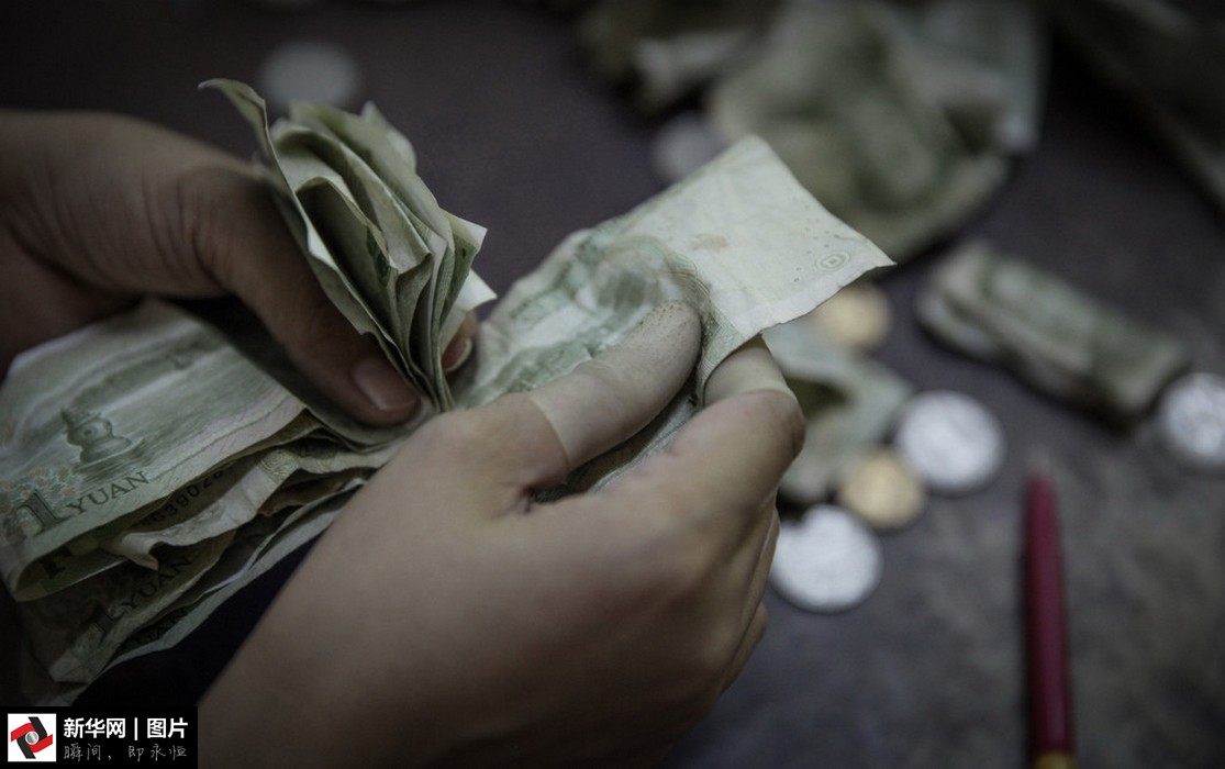 點鈔員從成堆的投幣箱內(nèi)清理出零鈔準備清點。