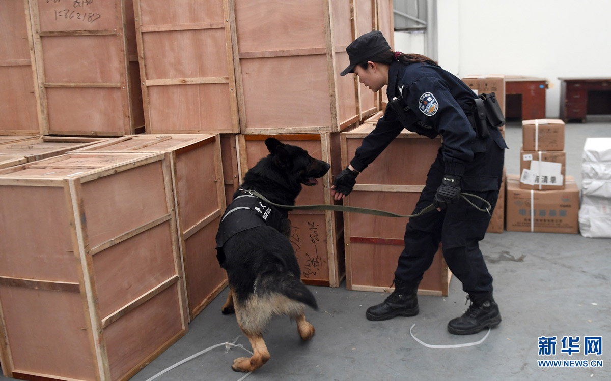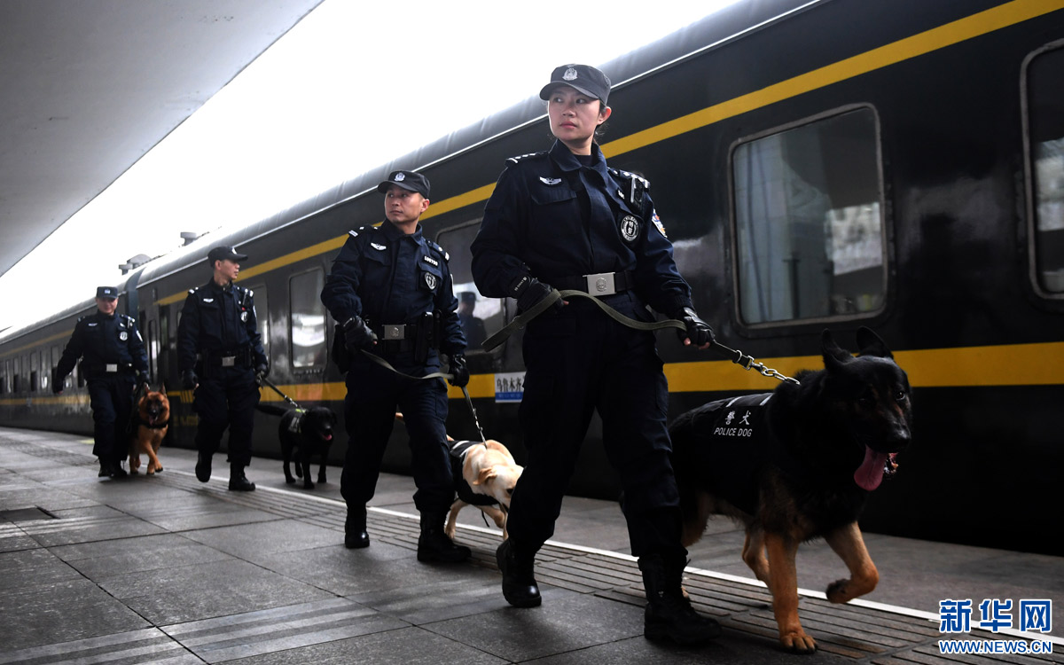 2月5日,劉慧和“威利”在車站行李房進行搜查。新華社記者 程敏 攝
