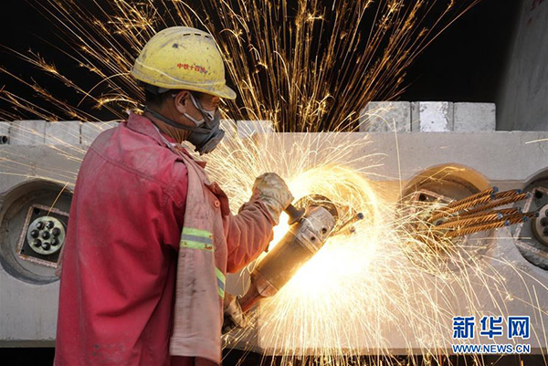 中鐵十四局集團的工人在魯南高鐵山東臨沂段施工(11月2日攝)。新華社記者 邢廣利 攝
